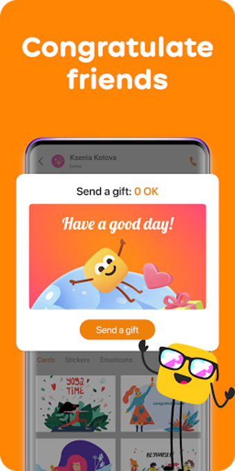 Odnoklassniki的一大优点是该应用程序允许用户免费拨打对方的电话。还有许多其他免费功能,例如发送消息和贴纸的功能。通过简单直观的搜索引擎,搜索新朋友很容易,而所需的所有类型的内容只需点击一下屏幕即可在用户之间即时共享。